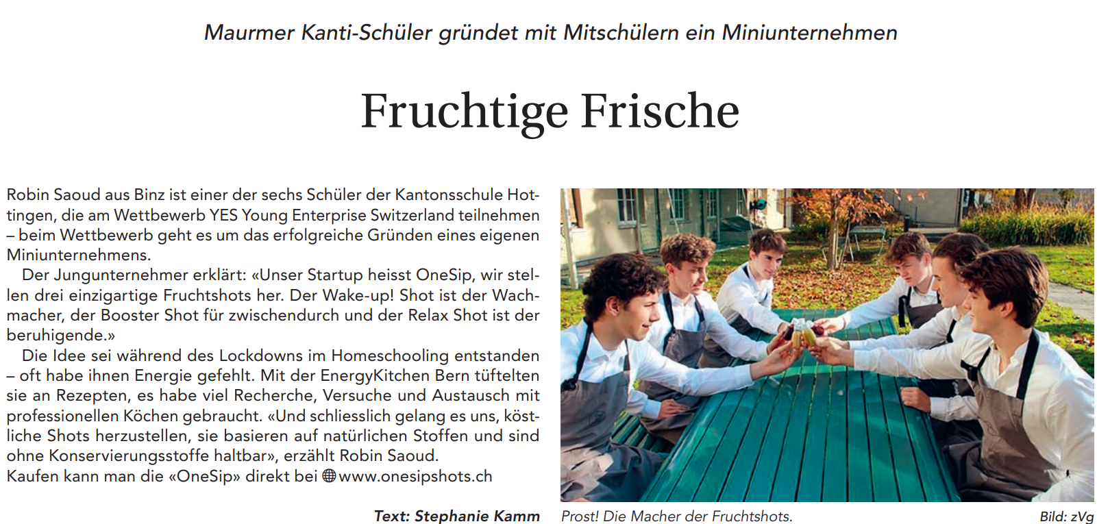 In Zusammenarbeit mit Young Enterprise Switzerland (YES), einem Mitglied von Junior Achievement Young Enterprise Europe und Junior Achievement Worldwide, nehmen die Jungunternehmer im Rahmen des Company Programmes von YES an nationalen und internationalen Wettbewerben teil.