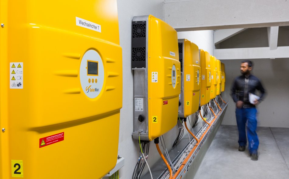 Wir beziehen unseren Strom von unserer hauseigenen Solaranlage. Das gesamte Dach des Schulhauses ist mit Solarpanels ausgestattet, so, dass durch den ganzen Tag hindurch Strom produziert werden kann. Zeitweise wird sogar soviel Strom produziert, so, dass wir den überschüssigen Strom in das Städtische Stromnetz einspeisen.