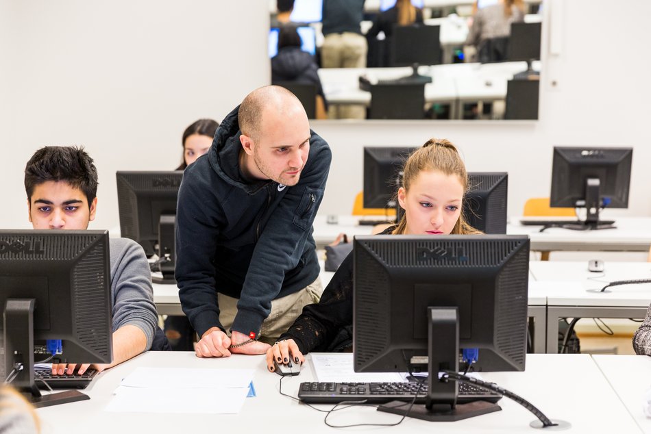 Wir verfügen über zeitgemässe Informatikanlagen: Fünf Zimmer sind vollständig mit Computern ausgerüstet und alle Klassenzimmer haben einen Touchscreenbildschirm, der für das Abspielen verschiedenster Medien, für Präsentationen usw. genutzt werden kann. Mit dem Notebook oder anderen mobilen Geräten können Sie auch unser Wireless LAN benützen. Der PC wird bei uns nicht nur im Informatik-Unterricht, sondern auch in den verschiedensten Fächern genutzt, so dass Sie unsere Schule als gewiefte Informatik-Anwender verlassen und bestens für das Studium oder das Berufsleben gerüstet sind.